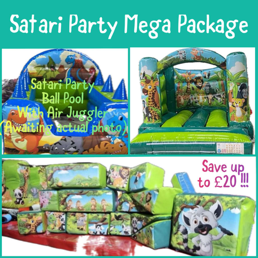 Our Safari Party Mega Package features the Safari Party Low Height Bouncy Castle, Safari Party Ball Pool & Air Juggler, and our Safari Party Soft Play Set. 🏰🎈🦒