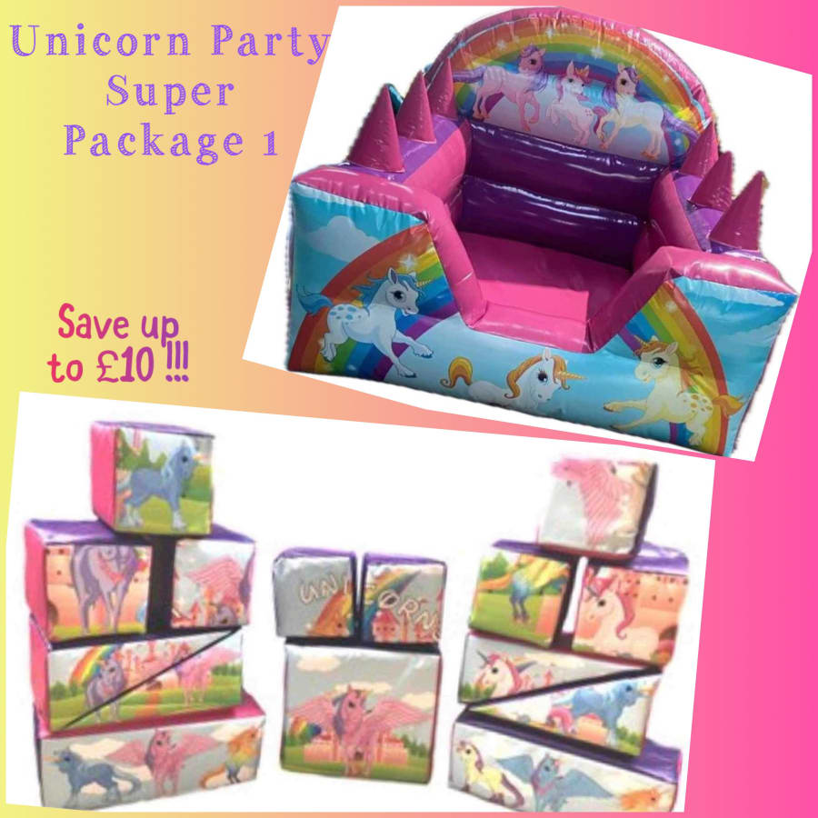 Get an instant discount of up to £10 when you purchase this package. Want more savings? How about an additional £10 off when you also hire our Unicorn Party Soft Play Step & Rocker?